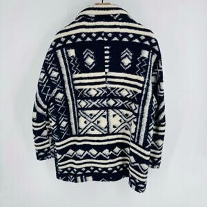 Chunky Navy Cream Geometric Pattern Coat Jacket Longline Boho Size L Fisherman
