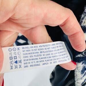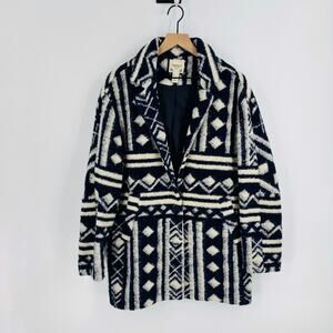 geometric coat, boho jacket, tribal print coat, navy cream outerwear, longline coat, Forever 21 L, patterned winter coat, lined jacket, statement coat, cozy textured coat, fall winter fashion, bohemian outerwear, women’s size large