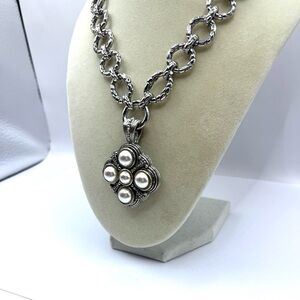 Chunky Necklace Elegant Silver and Pearl Pendant Removable Oversized Necklace