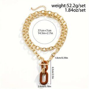 Chunky Necklace Wood Statement Wooden Gold Bold Circle Y2K Glam Toggle