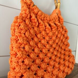 Straight out of 1976! Crocheted bamboo top handle bag. No stains, rips, tears. Non smoking home