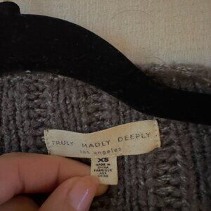 This sweater is perfect for layering in the colder months. It is very thick and warm, and falls just below the hips.