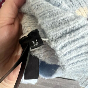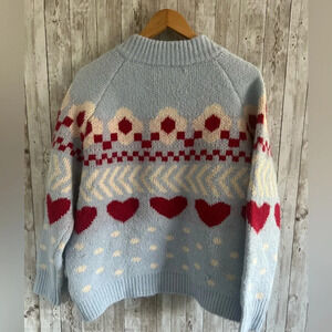 Chunky Oversized Knit Sweater Cardigan Light Blue Hearts Medium