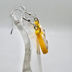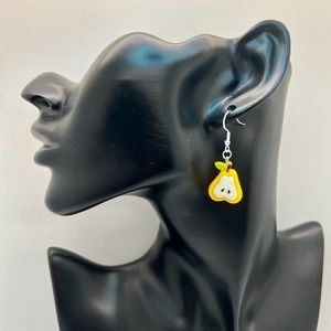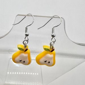 Chunky Pear Slice Fruit Earrings - Yellow and White