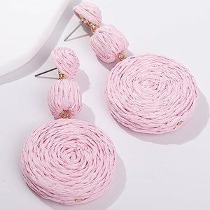Chunky Petal Pink Raffia Earrings Wicker Bold Retro Statement Dangle 80s 90s New