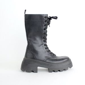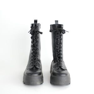Awesome Asos boots! In a combat boot style with amped up round toes, platform soles, and chunky heels. The boots are a classic lace-up but also has zipper closures at the inner sides. The boots are constructed of synthetic leather material. Made in Italy. Please compare the measurements below to a similar pair of boots that fit you well. Additional photos are available upon request. In excellent preowned condition with minimal signs of wear. Marked size is 8 US (39 Euro). I think these run a big large -- please check measurements to ensure proper fit.