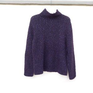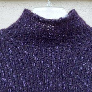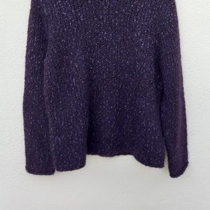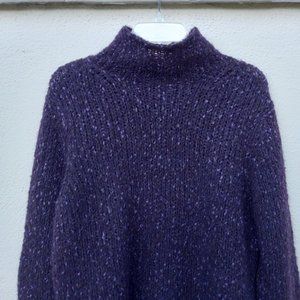 Beautiful purple mock neck long sleeved sweater. Cozy, nubby material. Dark purple with lighter purple flecks. Kind of has the look of a hand-knit item (like a scarf or mittens your grandma would make). Modern/on trend slightly slouchy mock neck cut. GUC.