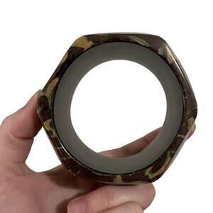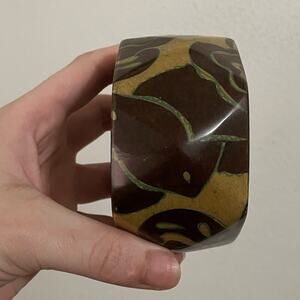 Chunky Resin Bangle Bracelet Brown Tan Abstract Floral Design Boho Retro Jewelry