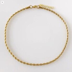 This 18 karat gold plated piece is an essential in your accessories wardrobe. Perfect for wearing alone to create a simple statement due to the perfect rope detailing or team with longer chains to create your ultimate layered look.
