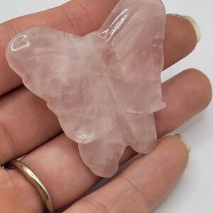 Chunky Rose Quartz Butterfly Carved Pendant 2in