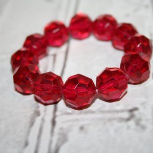 Beautiful condition Length: 7" Chunky ruby red beads with glossy finish Elastic for easy on and off—no clasp Lightweight and stackable