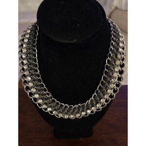 Chunky Silver Chain Necklace With Rhinestone & Black Suede Detailing