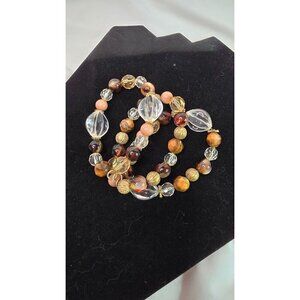 Chunky Silver Tone Glass & Turquoise Colored Chip Stretch Bracelet Bundle is a perfect accessory for every Boho-chic woman. Its brown and blue mixed materials add a unique color pop to any outfit. One size fits all.