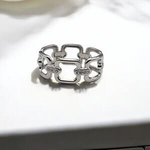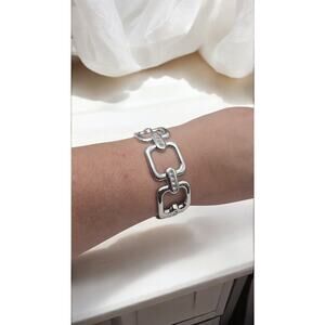 Make a bold statement with this eye-catching chunky silver-tone bracelet! Featuring oversized square and buckle-inspired links, this modern piece is accented with sparkling rhinestones for the perfect touch of shine.