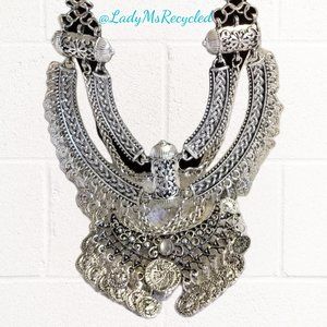 Chunky Silver-tone Statement Coin Necklace & Earrings Boho Belly Dance NEW!