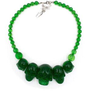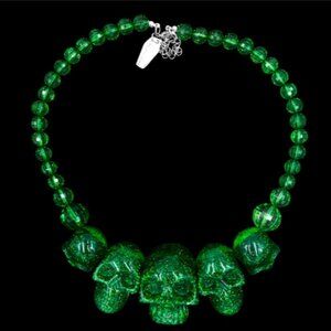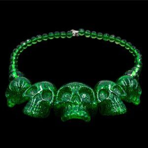 Chunky Skull Collection Punk Necklace in Green Glitter Resin NWT