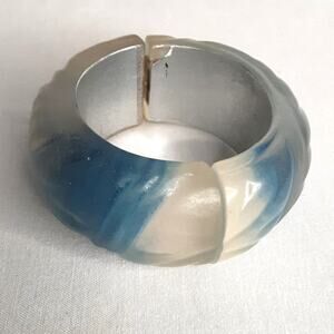 Chunky Smokey Acrylic Hinge Bracelet Blue Beige Textured Pattern
