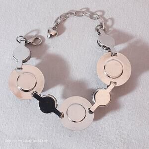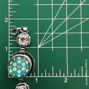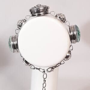 Chunky Snap Bracelet Silver Tone Chains Holding Rhinestones And Glass Cabochons