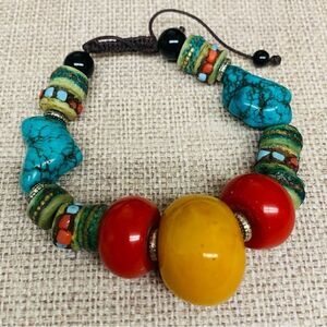 Chunky Southwest Tribal Style Beaded Drawstring Bracelet