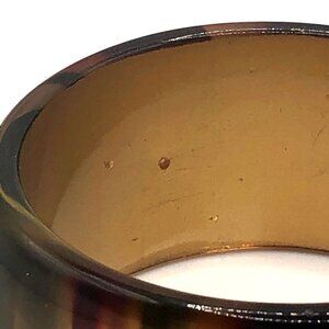 Good preowned condition. Light surface scratches from normal wear. There is one small scuff/flake in the finish on one side, shown clearly in the close-up photo. No cracks or major chips—still a gorgeous, bold statement bangle with lots of life left.