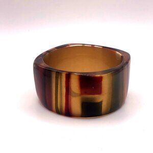 Chunky Striped Lucite Style Square Bangle Bracelet Amber Gold Burgundy Green