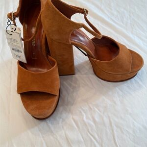 Zara Collection chunky heel in brown suede. Perfect for fall 🍁🍂 Never worn with tags attached