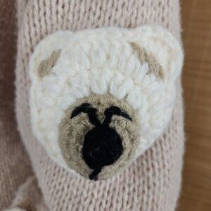 Debut Cropped Sweater 3D Bear Chunky Crochet Beige Polyester Cardigan