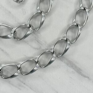 Chunky Textured Silver Tone Metal Chain Link Belt Size XS Small S