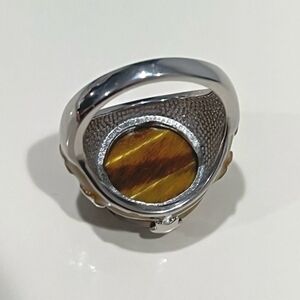 Chunky Tigers Eye Statement Ring Stainless Steel Star Details - Size 7