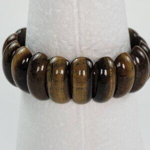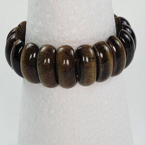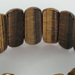 Chunky Tiger's Eye Stretch Cuff Bracelet Brown Rectangle