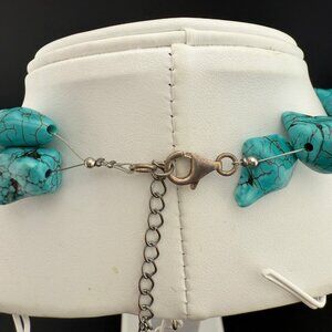 Chunky Turquoise Dyed Howlite Necklace With Sterling Silver Clasp Adjustable Cha