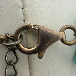 This statement necklace features chunky turquoise-dyed howlite beads, paired with smoky accent beads for a bold and elegant design. Secured with a sterling silver clasp and an adjustable chain.