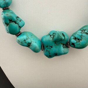Chunky Turquoise Howlite Nugget Necklace With Silver Tone Accents & Toggle Clasp