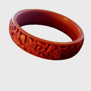 Chunky Vintage Carved Chinese Cinnabar Bangle Bracelet