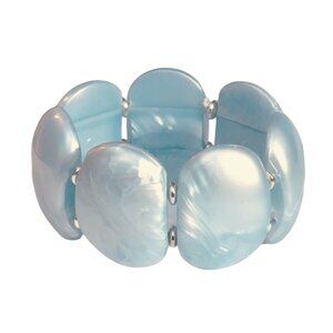 This beautiful vintage bracelet features chunky light blue marbled moon glow thermoset lucite panels with silver tone spacer beads. . Its unique design and vintage charm make it a standout accessory.