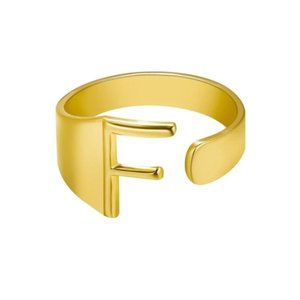 Chunky Wide Hollow F Letter Initial Gold Ring