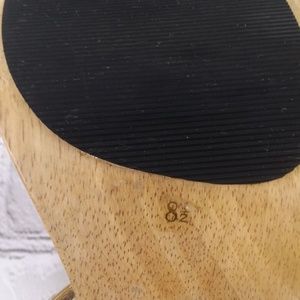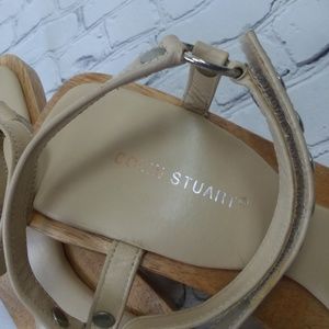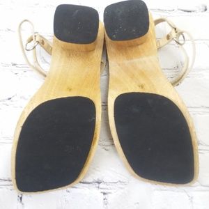 Colin Stuart size 8.5 beige high chunky block heel, wooden sole, small platform, %100 real genuine leather, silver studs on velcro ankle strap, slightly square squared off toe, black skid no slip soles- amazing craftmanship, soft leather and so cute! 70's inspired retro, clogs mules style, very vintage looking.