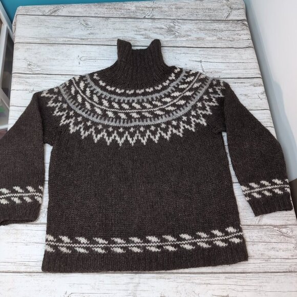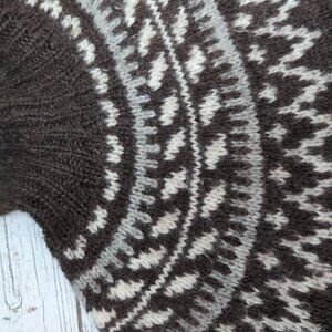 Chunky Wool Nordic Knit Sweater Brown White Fair Isle Pattern – Unisex 22.5"