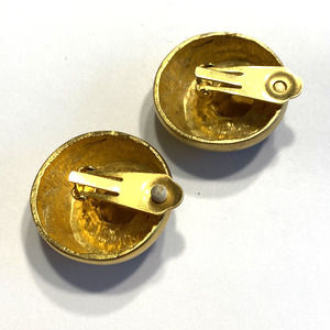 Chunky Y2K Clip On Earrings done in brushed goldtone metal settings with huge purple center stones. These have a mod round shape that is pure elegant luxury. No hallmarks - nice quality fashion jewelry - these earrings will enhance any outfit - they are absolutely stunning! Wish my pictures were better - the glass center stones have a fabulous faceted sparkle! Gently worn - no flaws - totally WOW!