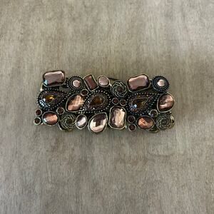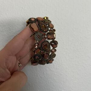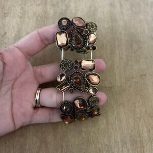 Add a touch of vintage glamour to your look with this stunning Y2K-inspired bracelet! Featuring chunky gold and brown-toned faux gemstones, this elastic bracelet is perfect for a date night or any special occasion. The bracelet is in excellent condition and ready to wear. Don't miss out on this unique piece! Treat yourself or surprise someone special with this eye-catching Y2K bracelet!