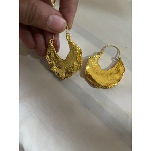 Chunky gold hoops big vintage style gold earring geometric gold earring ,
