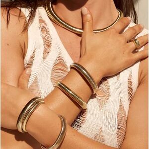 Chunky gold bangle bracelet set
