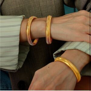 Set of 3 stackable bangles. The bangle bracelets are made of 316L stainless steel with multiple layers of 18K gold plating.