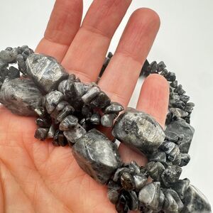 Beautiful 18" long of solid labradorite chips and big beaded necklace!
