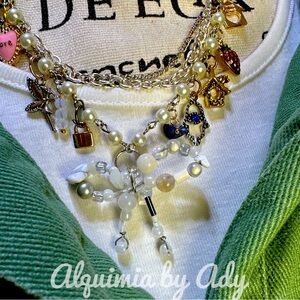 Chunky multi charms layered pink lapis opals pearls coral necklace maximalist