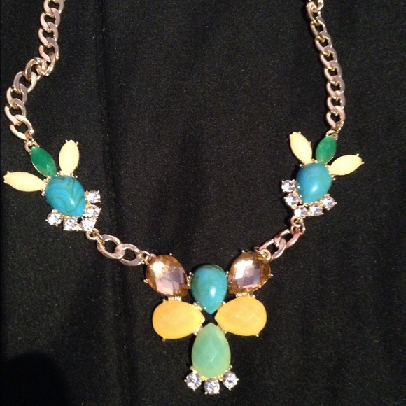 Chunky multi colored gold necklace