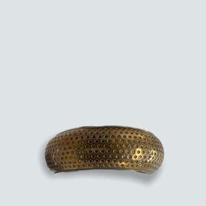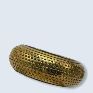 Chunky retro brass tone / antiqued gold finish bangle bracelet. Pinhole / mesh texture. 80s vibe