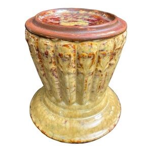 Chunky round ceramic candle holder earthy colors. Great for Fall Thanksgiving