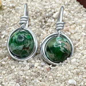 Chunky sea sediment Jasper dangle spheres silver earrings
