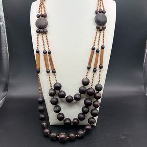 Chunky Boho Wood Necklace Brown Bead Disk Round Beads VTG Southwest Classic